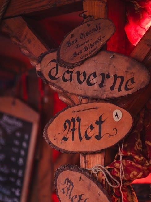 These descriptions likely cover architectural styles, décor, and even the scents and sounds that define each tavern’s unique character. The guide aims to provide DMs with everything needed to vividly describe these locations to their players, fostering a sense of presence and immersion; Details extend to potential points of interest and hidden secrets within each tavern, encouraging exploration and discovery.